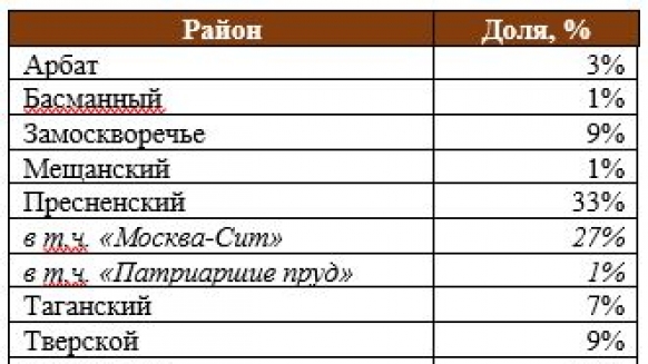 По итогам 2018 самым застраиваемым районом московского рынка элитной недвижимости стал Пресненский район – 33%.