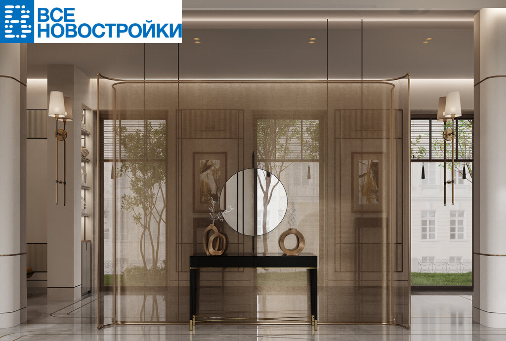- лобби с отделкой из натурального камня, арочные потолки холла из стеклянного кирпича, натуральное дерево;