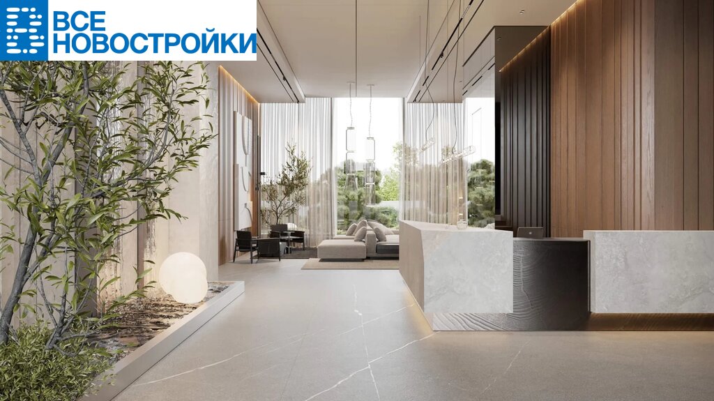 Две 16-этажных секции дома соединит лобби с дизайнерской отделкой. Оно станет стильным общественным пространством и главным входом для жителей, также ведущим в скрытый от посторонних глаз приватный внутренний двор.