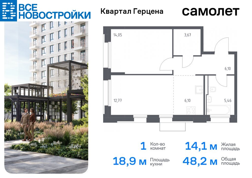 Ипотека 5,9% на два года. Продается 1-комн. квартира. Квартира расположена на 14 этаже 21 этажного монолитно-кирпичного дома (Корпус 1, Секция 5) в ЖК «Квартал Герцена» от группы «Самолет».