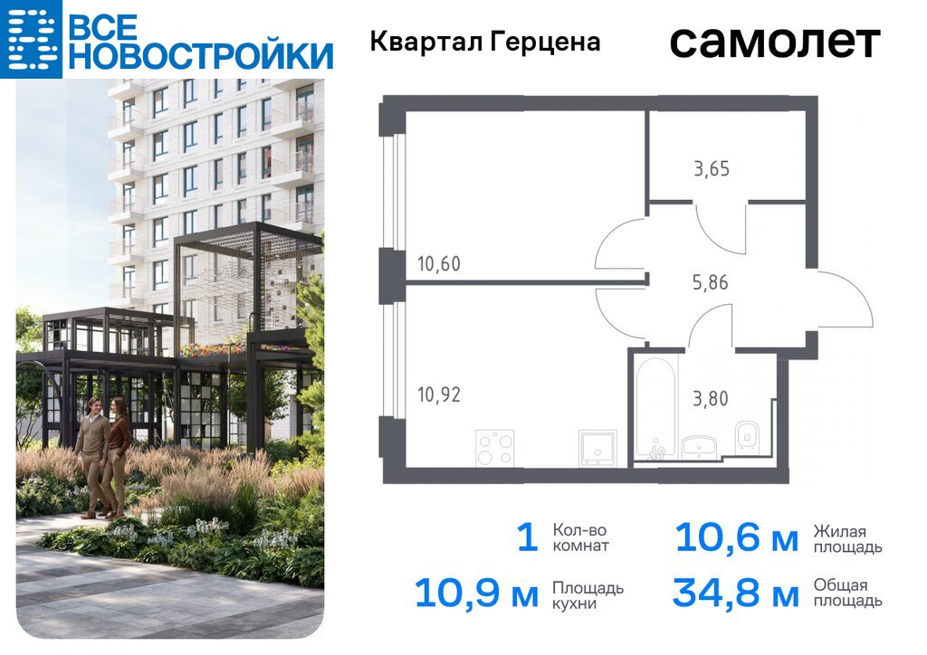 Ипотека 5,9% на два года. Продается 1-комн. квартира. Квартира расположена на 15 этаже 30 этажного монолитно-кирпичного дома (Корпус 2, Секция 2) в ЖК «Квартал Герцена» от группы «Самолет».