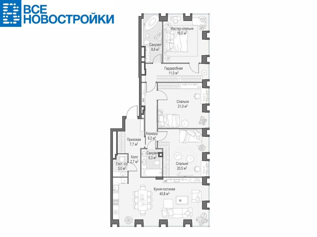Новая роскошь — это сочетание идеального расположения, просторной закрытой территории и респектабельной приватности: квартал занимает 3 га, но на этаже будет не больше 2-3 квартир. Представлены уникальные виллы с патио и террасами на кровле; двухэтажные квартиры, пентхаусы с 7-метровыми потолками, каминами и террасами.