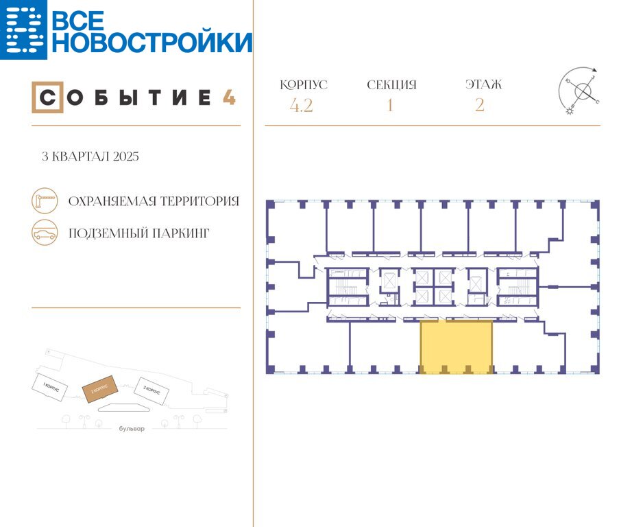 СОБЫТИЕ 4 – единственный в столице жилой небоскреб премиум-класса с парком на высоте 170 м и парящими мостами на уровне 25-27 этажей. Это эксклюзивный для Москвы вертикальный город будущего, в котором на разных уровнях дома, от земли до неба, есть своя инфраструктура для отдыха, спорта и работы. На парящих мостах обустроены лаунжи и коворкинги. На крыше - обзорная площадка, беговая дорожка, воркаут, игровая зона и места тихого отдыха. Из дома открываются потрясающие виды на парки, МГУ, Сити и Поклонную гору.