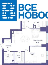 В доме большой выбор студий и квартир площадью 22,4–135,7 кв.м. Их отличают современные планировки, потолки высотой 3,1–3,5 м и панорамные окна ""в пол"". В части квартир – панорамные окна с купольным остеклением верхней части и окна в ванных комнатах.