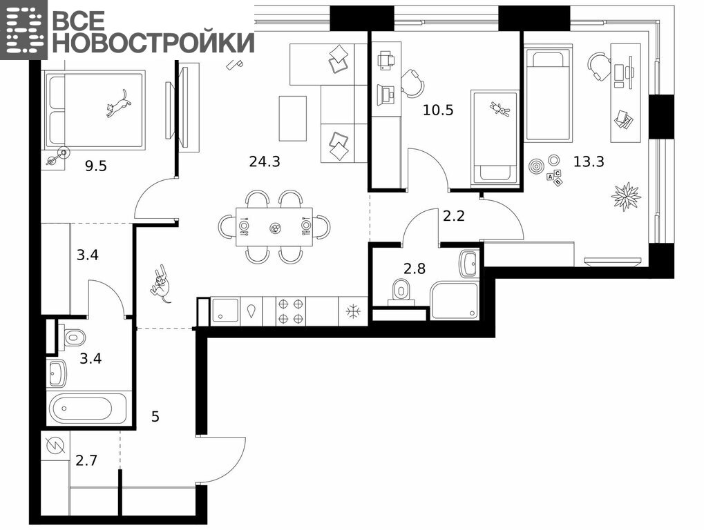 Продаётся 3-комн.квартира площадью 77.10 кв.м на 8 этаже 28 этажного дома (Корпус 6.6, секция 5) проекта ПИК Зелёный парк. Светлый просторный подъезд на уровне земли, функциональная планировка, большие окна, с отделкой.