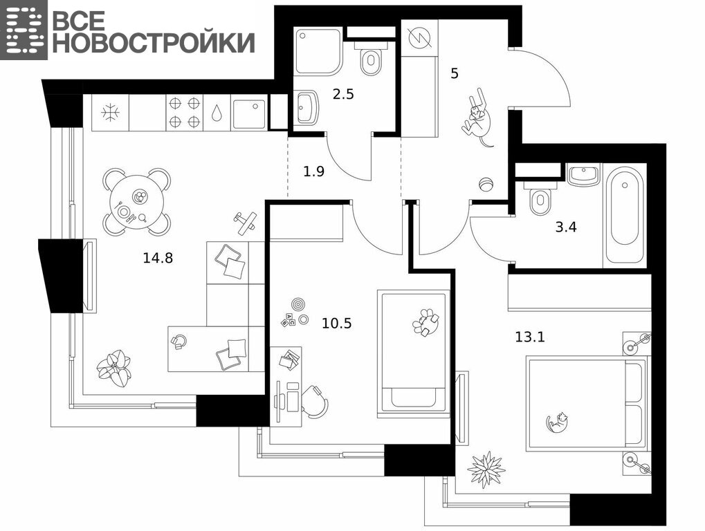 Продаётся 2-комн.квартира площадью 51.20 кв.м на 12 этаже 28 этажного дома (Корпус 6.6, секция 5) проекта ПИК Зелёный парк. Светлый просторный подъезд на уровне земли, функциональная планировка, большие окна.