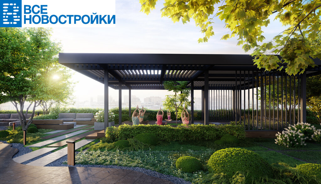 Значительная часть территории квартала — это зеленые зоны, которые формируют атмосферу уюта и гармонии. Ландшафтный парк площадью 1,5 га, японский сад и живописные прогулочные тропы создают идеальные условия для отдыха на природе. Многоуровневое озеленение включает вертикальные конструкции и разнообразие деревьев и кустарников, добавляя динамику и объем пространству.