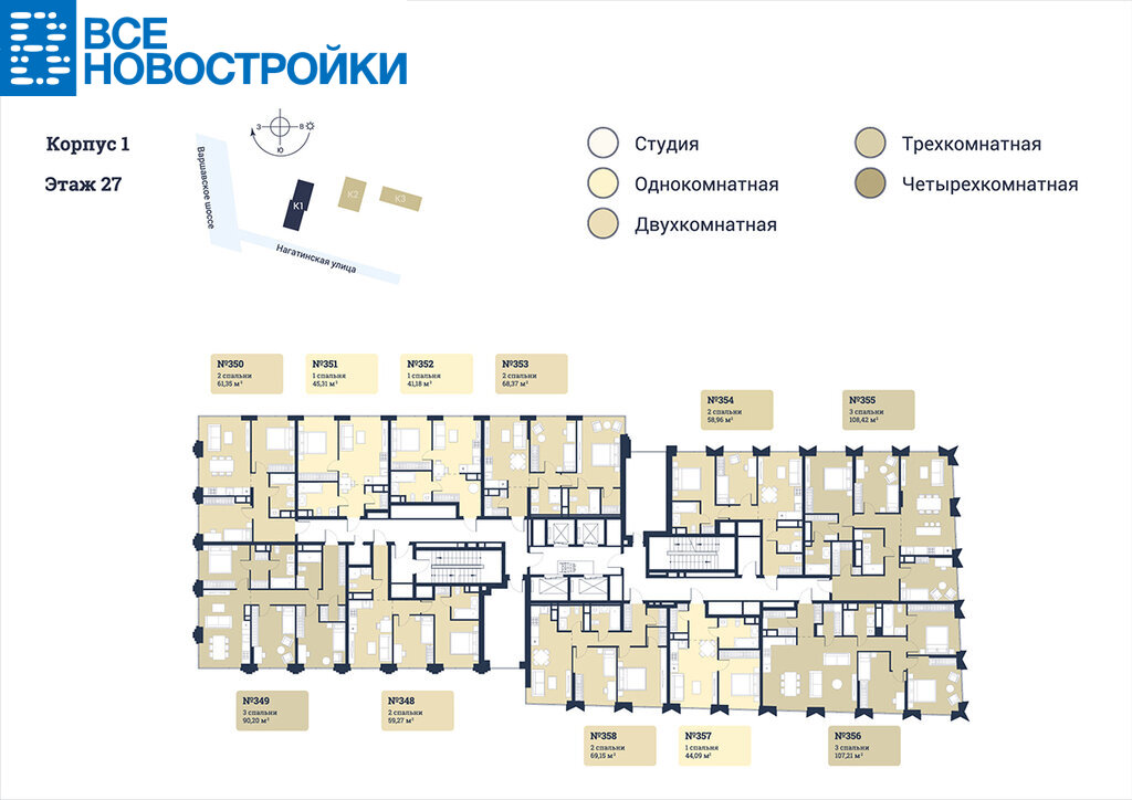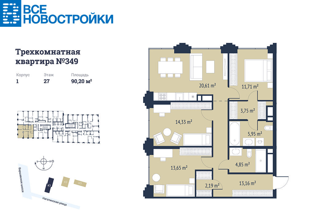 3-комнатная квартира: Москва, Нагатинская улица, к1вл1 (91.5 м²)
