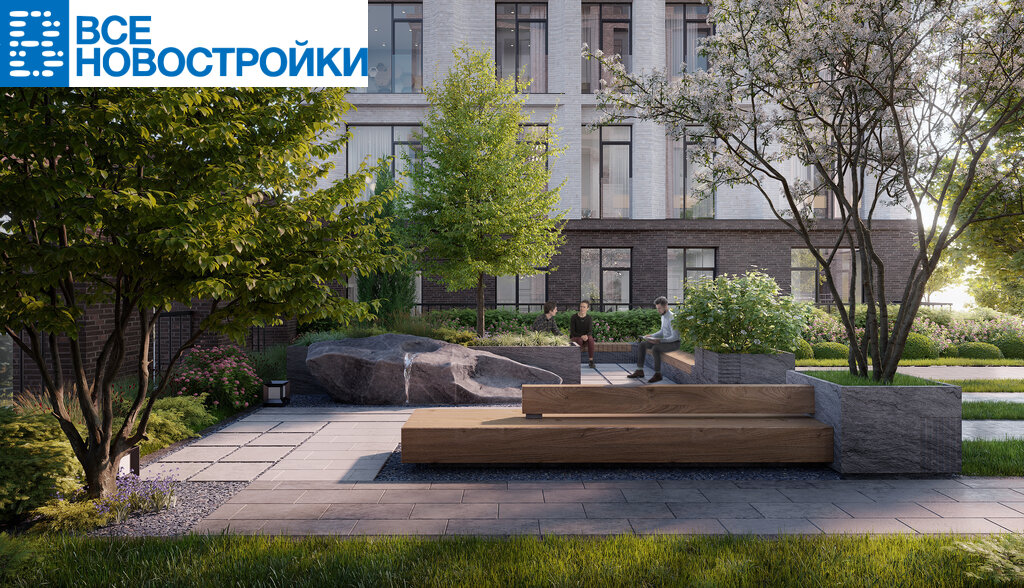 Значительная часть территории квартала — это зеленые зоны, которые формируют атмосферу уюта и гармонии. Ландшафтный парк площадью 1,5 га, японский сад и живописные прогулочные тропы создают идеальные условия для отдыха на природе. Многоуровневое озеленение включает вертикальные конструкции и разнообразие деревьев и кустарников, добавляя динамику и объем пространству.