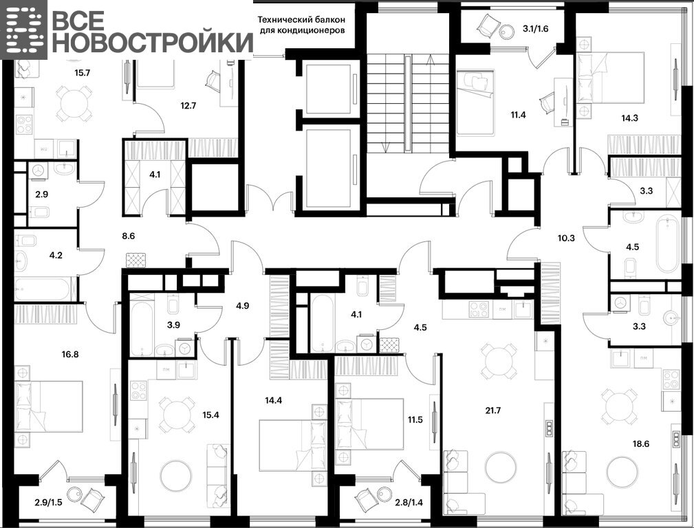 В ÁLIA больше 140 планировочных решений, среди которых — редкие для Москвы форматы: квартиры с окном в ванной, пентхаус, сити-юниты и таунхаусы.