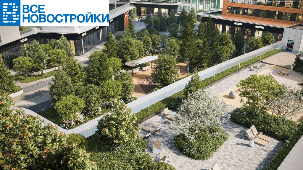 Дополнительные пространства для отдыха будут размещены в закрытых зеленых дворах на стилобате. Здесь будут расположены детские площадки с песочницами, тактильными дорожками, каруселями и природными игровыми элементами. Те, кто привык работать и отдыхать с комфортом, по достоинству оценят тишину зон отдыха, наличие удобных кресел и настила для йоги. В холодное время года будет приятно воспользоваться навесами, оснащенными подогревом и зарядными устройствами.
