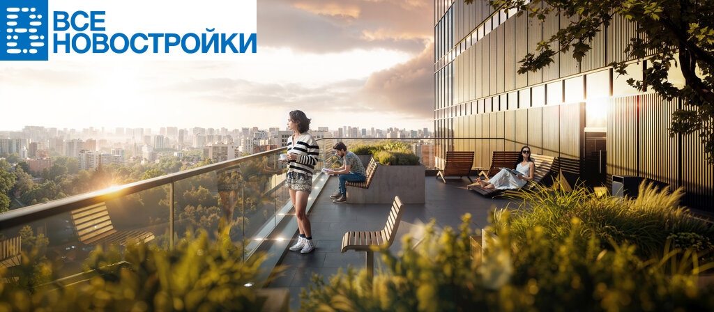 В корпусе 1.4 появится общественная терраса на 30-м этаже. Доступ сюда есть только у жителей, поэтому вы не встретите в этом пространстве посторонних людей. Здесь можно заниматься спортом, отдохнуть за чтением книги или создать собственный сад. А ещё отсюда открываются красивые виды на город.