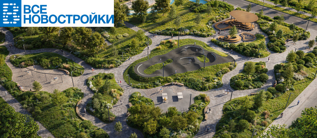 А специально для подростков мы спроектировали уникальное пространство для отдыха — памп-трек для катания, большой навес, амфитеатр и сетки для отдыха, где они смогут собираться вместе в любую погоду.