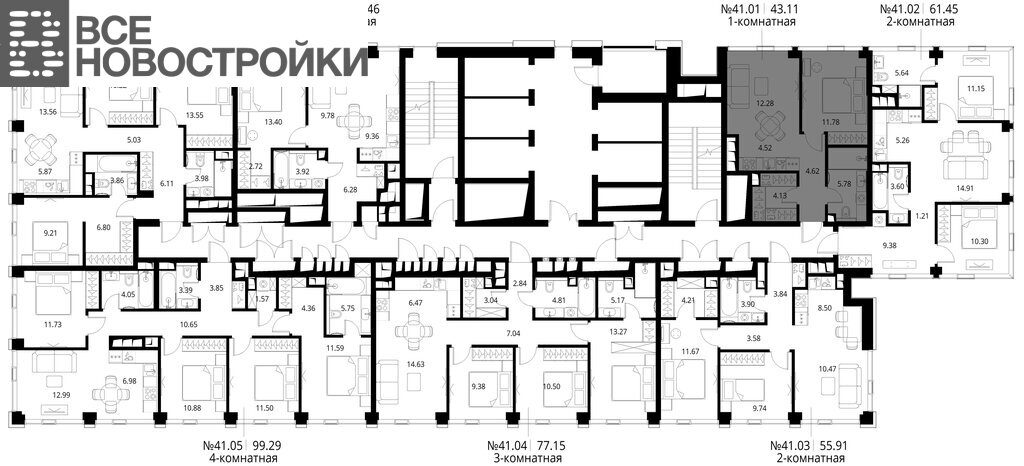 Продается 1-комнатная квартира от застройщика в жилом комплексе City Вау, площадью 43.11 м2 на 41 этаже.