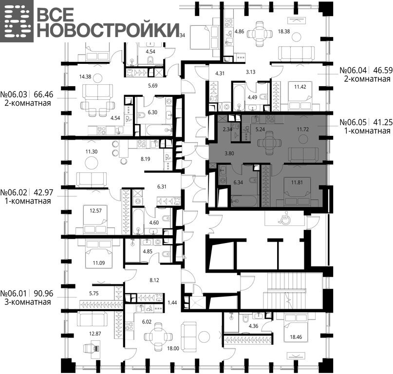 Продается 1-комнатная квартира от застройщика в жилом комплексе City Вау, площадью 41.25 м2 на 6 этаже.