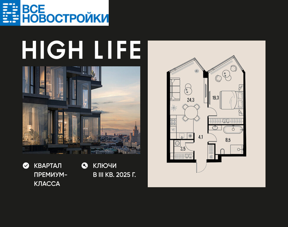 HIGH LIFE - премиальный проект компании PIONEER, расположенный в 5 минутах от Садового кольца, вблизи исторического Замоскворечья. Авторская архитектура от бюро ADM. Панорамные окна и изящные эркеры открывают виды на Кремль, МГУ, Москва-Сити, Дом Музыки и набережные реки. 70% видовых квартир. Инфраструктура и сервис отеля 5*: • Дизайнерские лобби от Jaime Beriestain Studio • Частный кинозал • Библиотека с камином • Двухуровневый двор-парк 2 га с хвойным лесом и террасами • Залы для йоги и занятий спортом • Массажный кабинет, SPA и бьюти-зоны • Консьерж-сервис Технологии и инженерия: • Центральная система кондиционирования • Дополнительная вентиляция помещений • Буферная мусорокамера • Обеззараживание воздуха • Мониторинг качества воды с дополнительной доочисткой • Дополнительная шумоизоляция • Автоматизированная система передачи данных в УК Системы безопасности: • Датчики движения • Круглосуточное наблюдение • Система доступа с распознаванием лиц • Приложение для наблюдения за квартирой • Система пожарного обнаружения • Датчики дыма и протечек За 22 года на рынке недвижимости компания PIONEER реализовала более 30 проектов. Сегодня PIONEER - девелопер премиальной недвижимости с 4 проектами класса премиум и deluxe. Звоните, и мы с удовольствием расскажем все подробности о нашем замечательном проекте и условиях покупки. Продажа от застройщика.