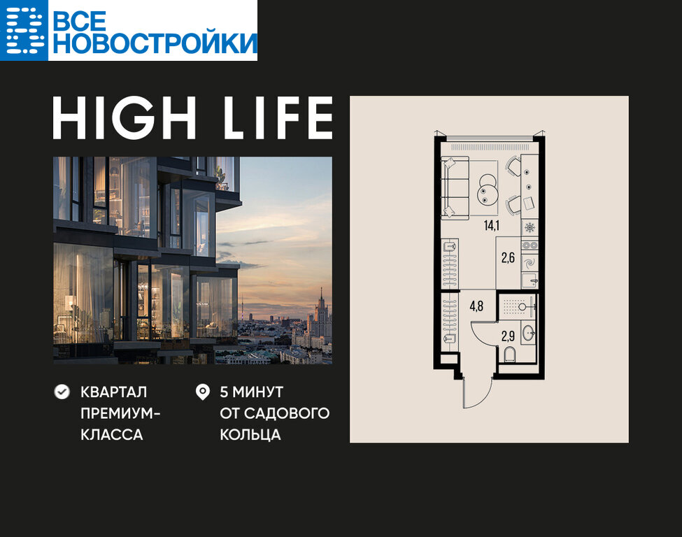 HIGH LIFE - премиальный проект компании PIONEER, расположенный в 5 минутах от Садового кольца, вблизи исторического Замоскворечья. Авторская архитектура от бюро ADM. Панорамные окна и изящные эркеры открывают виды на Кремль, МГУ, Москва-Сити, Дом Музыки и набережные реки. 70% видовых квартир. Инфраструктура и сервис отеля 5*: • Дизайнерские лобби от Jaime Beriestain Studio • Частный кинозал • Библиотека с камином • Двухуровневый двор-парк 2 га с хвойным лесом и террасами • Залы для йоги и занятий спортом • Массажный кабинет, SPA и бьюти-зоны • Консьерж-сервис Технологии и инженерия: • Центральная система кондиционирования • Дополнительная вентиляция помещений • Буферная мусорокамера • Обеззараживание воздуха • Мониторинг качества воды с дополнительной доочисткой • Дополнительная шумоизоляция • Автоматизированная система передачи данных в УК Системы безопасности: • Датчики движения • Круглосуточное наблюдение • Система доступа с распознаванием лиц • Приложение для наблюдения за квартирой • Система пожарного обнаружения • Датчики дыма и протечек За 22 года на рынке недвижимости компания PIONEER реализовала более 30 проектов. Сегодня PIONEER - девелопер премиальной недвижимости с 4 проектами класса премиум и deluxe. Звоните, и мы с удовольствием расскажем все подробности о нашем замечательном проекте и условиях покупки. Продажа от застройщика.