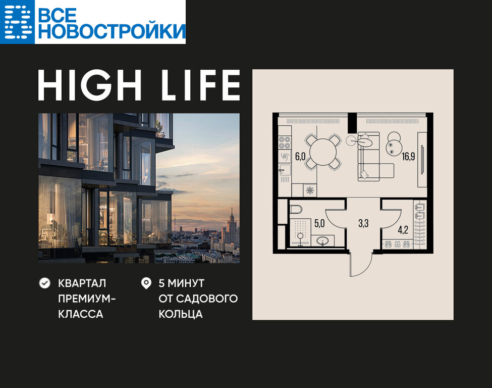 HIGH LIFE - премиальный проект компании PIONEER, расположенный в 5 минутах от Садового кольца, вблизи исторического Замоскворечья. Авторская архитектура от бюро ADM. Панорамные окна и изящные эркеры открывают виды на Кремль, МГУ, Москва-Сити, Дом Музыки и набережные реки. 70% видовых квартир. Инфраструктура и сервис отеля 5*: • Дизайнерские лобби от Jaime Beriestain Studio • Частный кинозал • Библиотека с камином • Двухуровневый двор-парк 2 га с хвойным лесом и террасами • Залы для йоги и занятий спортом • Массажный кабинет, SPA и бьюти-зоны • Консьерж-сервис Технологии и инженерия: • Центральная система кондиционирования • Дополнительная вентиляция помещений • Буферная мусорокамера • Обеззараживание воздуха • Мониторинг качества воды с дополнительной доочисткой • Дополнительная шумоизоляция • Автоматизированная система передачи данных в УК Системы безопасности: • Датчики движения • Круглосуточное наблюдение • Система доступа с распознаванием лиц • Приложение для наблюдения за квартирой • Система пожарного обнаружения • Датчики дыма и протечек За 22 года на рынке недвижимости компания PIONEER реализовала более 30 проектов. Сегодня PIONEER - девелопер премиальной недвижимости с 4 проектами класса премиум и deluxe. Звоните, и мы с удовольствием расскажем все подробности о нашем замечательном проекте и условиях покупки. Продажа от застройщика.