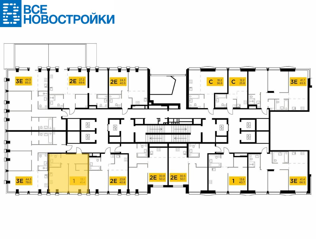 Общая площадь квартиры - 41.4 кв.м. Тип дома – монолитный.