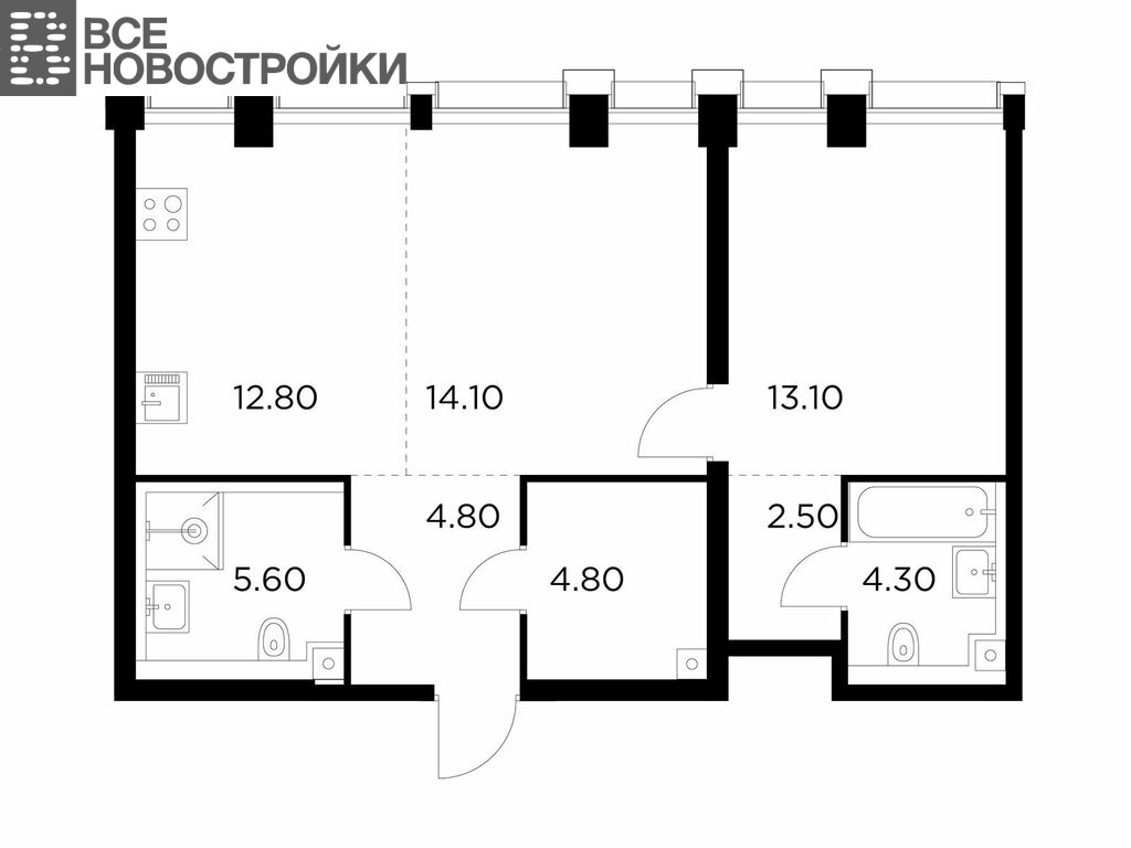 Общая площадь квартиры - 62 кв.м. Тип дома – монолитный.
