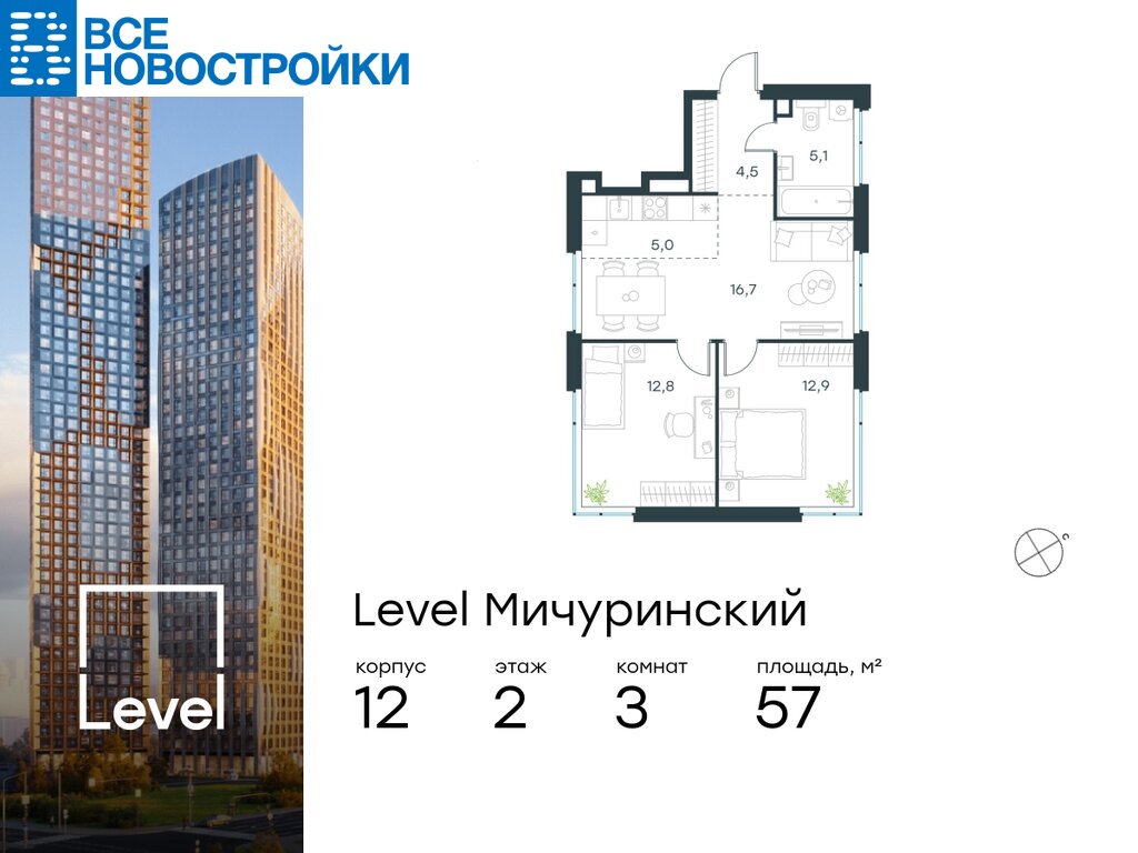 В жилом квартале, расположенном на границе с природным заказником «Долина реки Очаковки», продаётся 3-комнатная квартира площадью 57.00 кв.м без отделки. Квартира расположена на 2 этаже 11-этажного корпуса №12 в жилом комплексе бизнес-класса Level Мичуринский (компания Level Group/Левел групп).