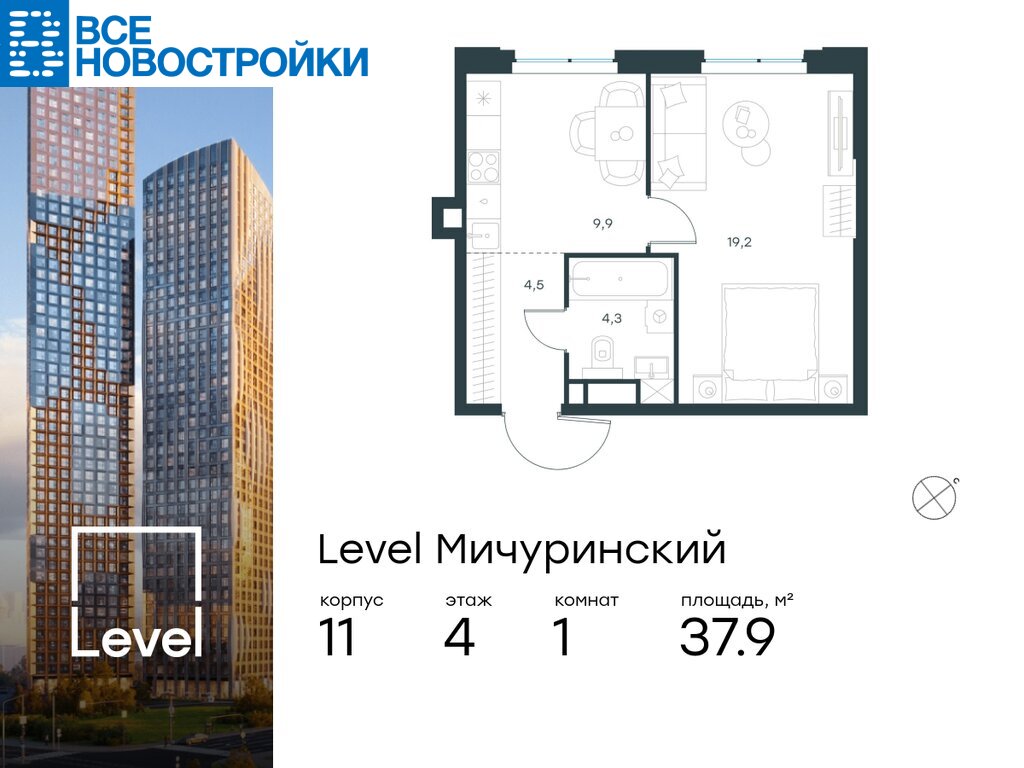 В жилом квартале, расположенном на границе с природным заказником «Долина реки Очаковки», продаётся 1-комнатная квартира площадью 37.90 кв.м без отделки. Квартира расположена на 4 этаже 24-этажного корпуса №11 в жилом комплексе бизнес-класса Level Мичуринский (компания Level Group/Левел групп).