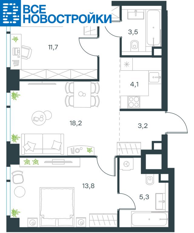 - Из окон открываются живописные виды на парки, Москва-Сити и МГУ.
