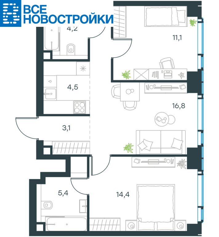 - Из окон открываются живописные виды на парки, Москва-Сити и МГУ.