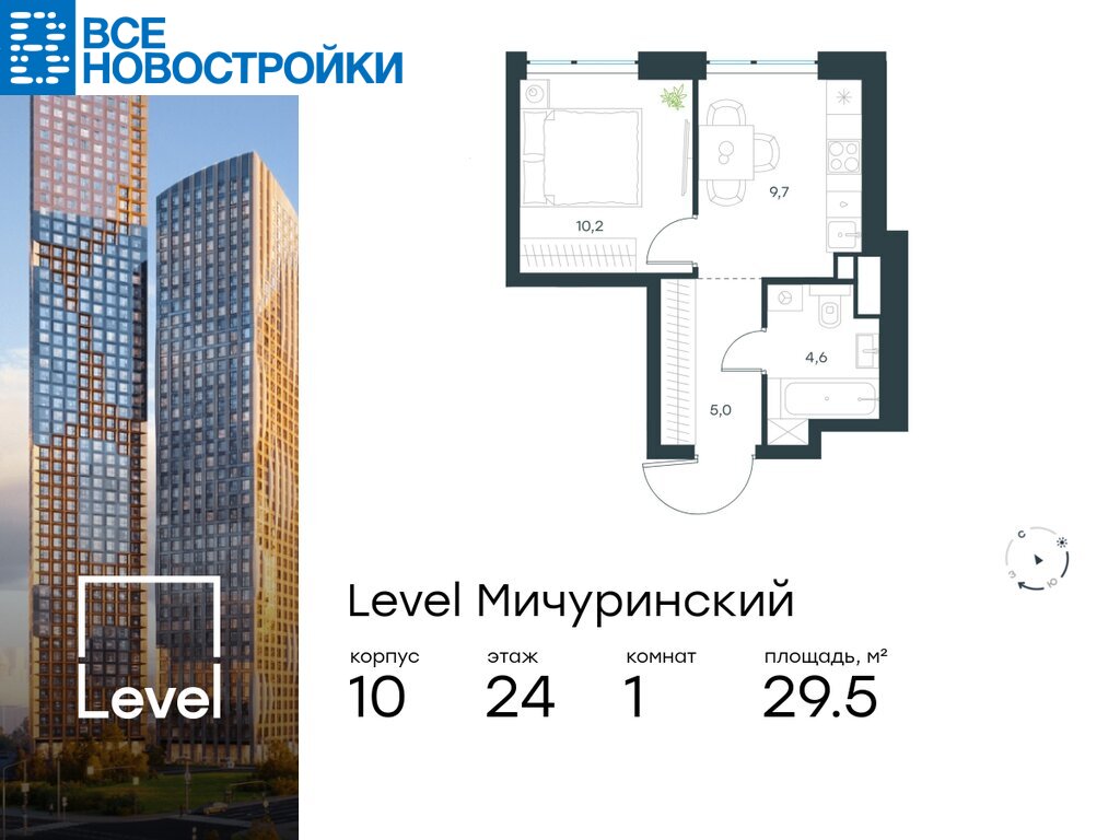 В жилом квартале, расположенном на границе с природным заказником «Долина реки Очаковки», продаётся 1-комнатная квартира площадью 29.50 кв.м с отделкой white box. Квартира расположена на 24 этаже 42-этажного корпуса №10 в жилом комплексе бизнес-класса Level Мичуринский (компания Level Group/Левел групп).