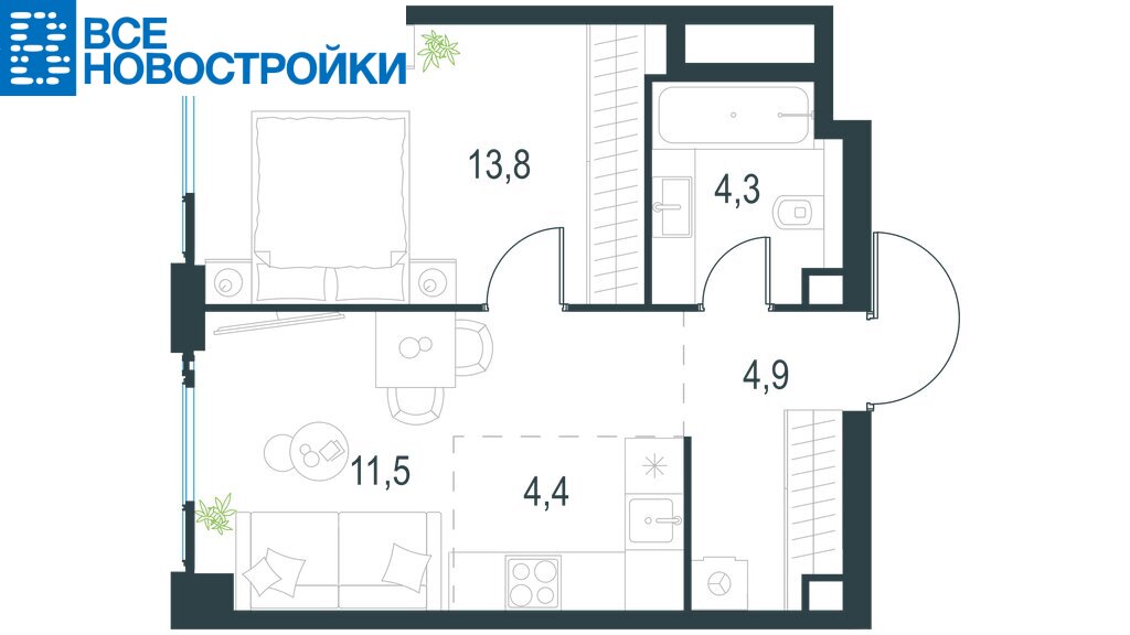 - Высокие потолки 3,0 м в типовых планировках;