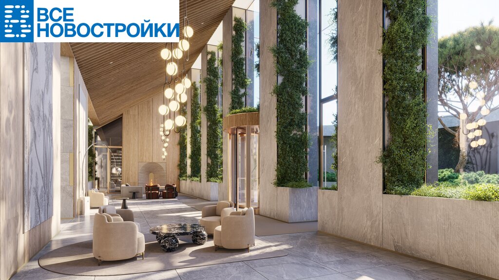 - Парадное лобби от международного бюро ODA Architecture с интерьерным озеленением