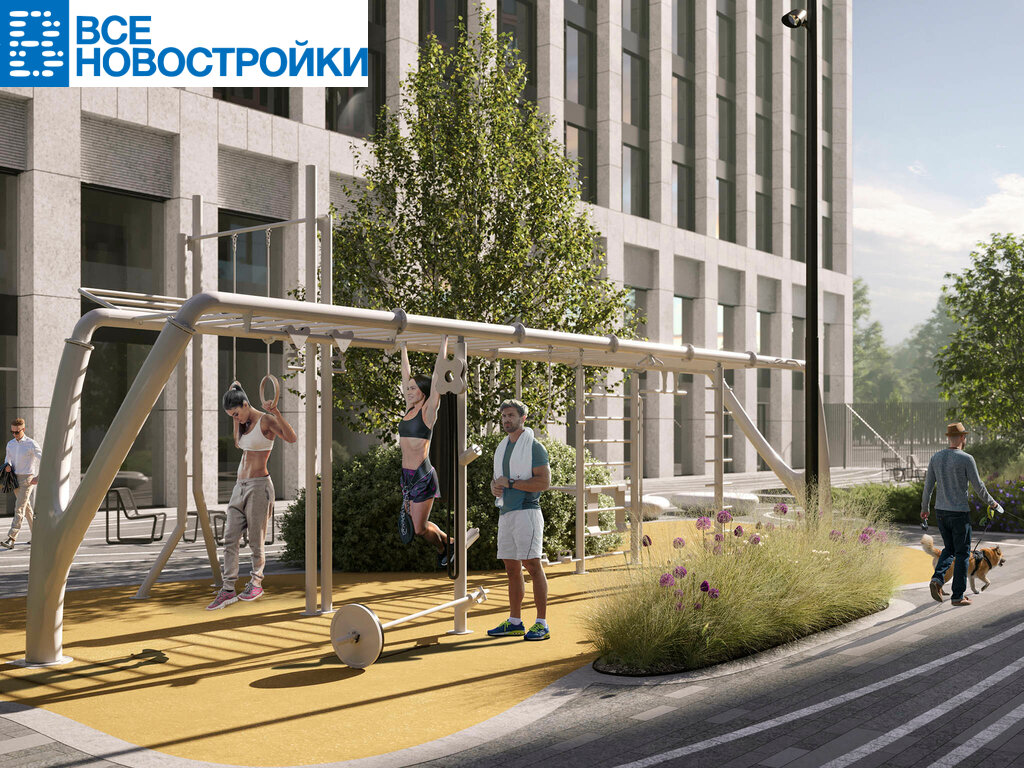 Закрытая территория жилого комплекса, продуманное благоустройство, эксплуатируемые кровли стилобата, образовательный центр с детским садом создают приватное пространство для тихой семейной жизни, а городская площадь с фонтанами, ресторан, супермаркет, коммерческая инфраструктура на первых этажах привносят созвучную с ритмом города динамику.