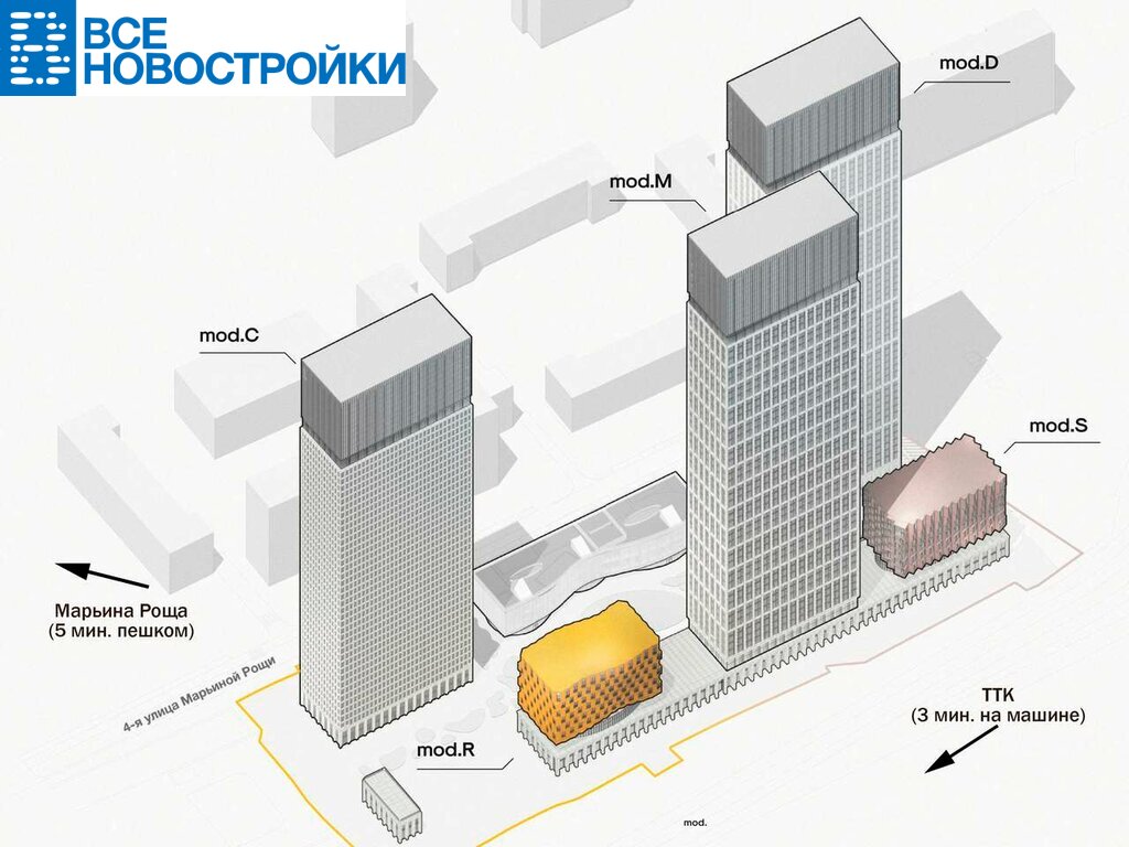 Mod - жилой комплекс премиум-класса в историческом районе Москвы Марьина Роща, состоящий из двух клубных домов (9 этажей) и трёх разноэтажных башен (44-55 этажей).