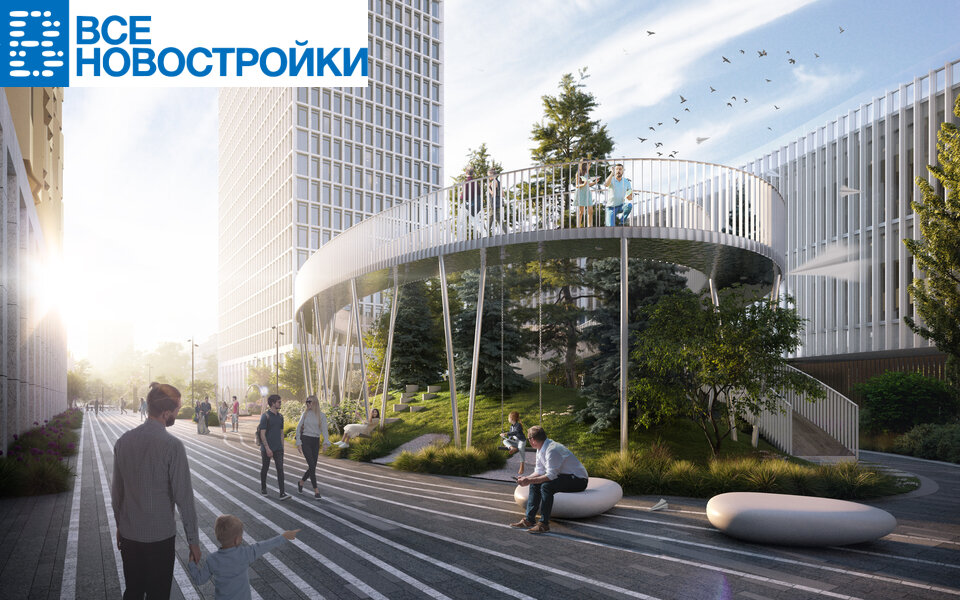 Закрытая территория жилого комплекса, продуманное благоустройство, эксплуатируемые кровли стилобата, образовательный центр с детским садом создают приватное пространство для тихой семейной жизни, а городская площадь с фонтанами, ресторан, супермаркет, коммерческая инфраструктура на первых этажах привносят созвучную с ритмом города динамику.