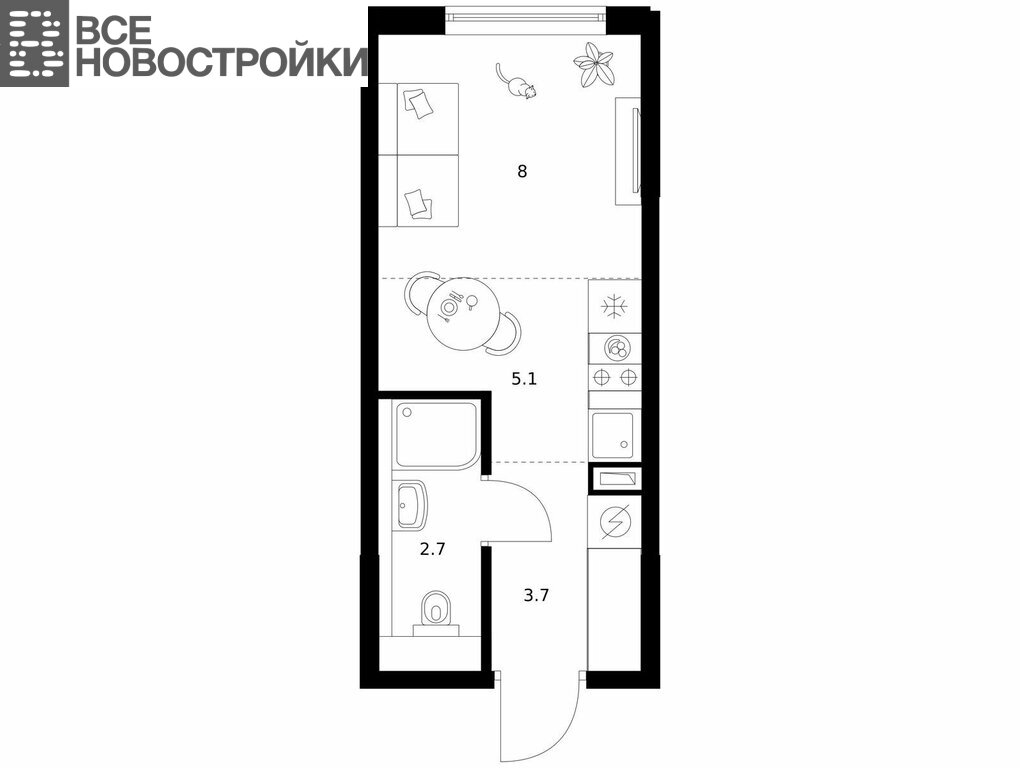 Продаётся квартира-студия площадью 19.50 кв.м на 8 этаже 17 этажного дома (Корпус 1.2, секция 3) проекта ПИК Москворечье. Светлый просторный подъезд на уровне земли, функциональная планировка, большие окна.