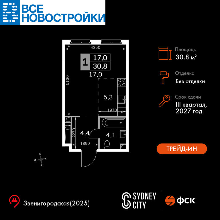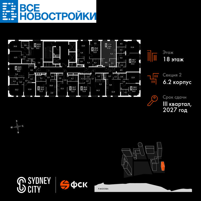 Продаётся студия №362 общей площадью 30.8 кв.м на 18-м этаже 27 этажного дома. Без отделки.