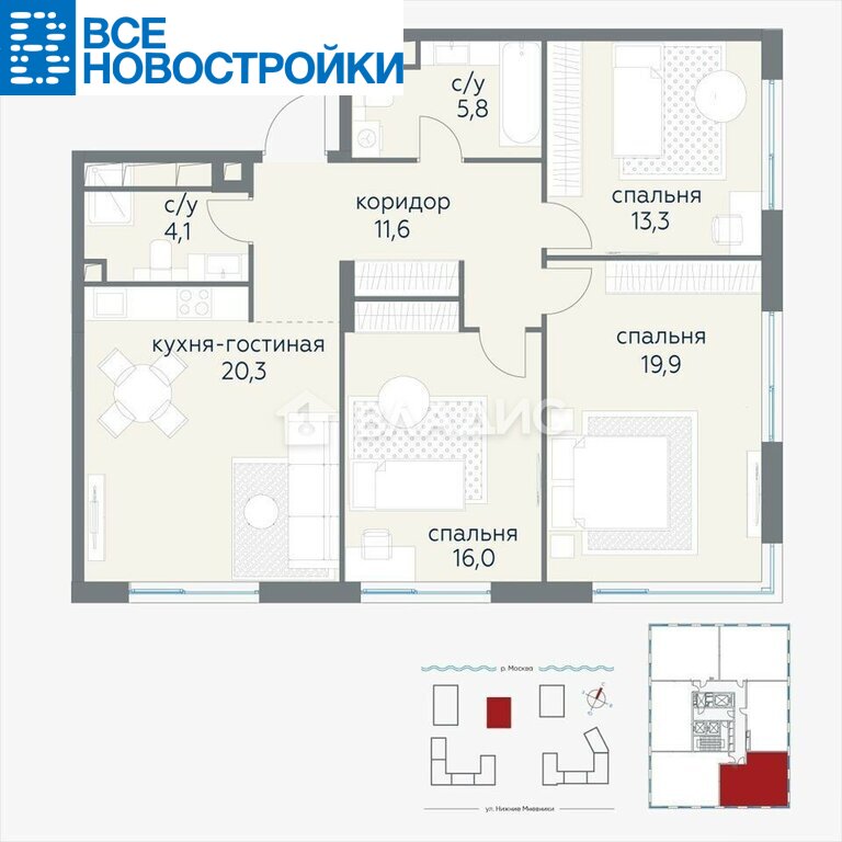 Квартира общей площадью 91,2м2 располагается на 10 этаже на 1-й линии р.Москва. В квартире крайне удачная планировка, в которой дизайнеры смогут воплотить и разместить все Ваши пожелания.
