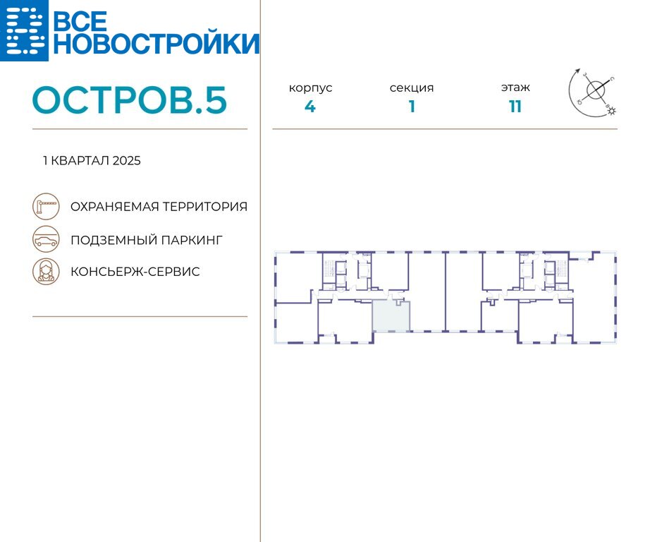 Квартира расположена в квартале 5, в корпусе 4 (секция 1). В каждом подъезде запроектирован пассажирский и грузовой лифты.