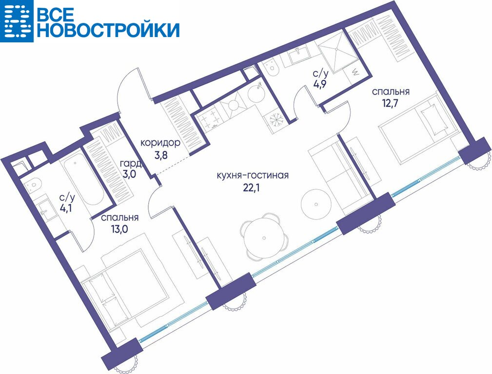 Квартира без чистовой отделки. Приступать к оформлению дизайна интерьера можно сразу после оформления права собственности. В квартире выделены мокрые зоны, установлены качественные двойные стеклопакеты, заведены инженерные коммуникации, есть счетчики.
