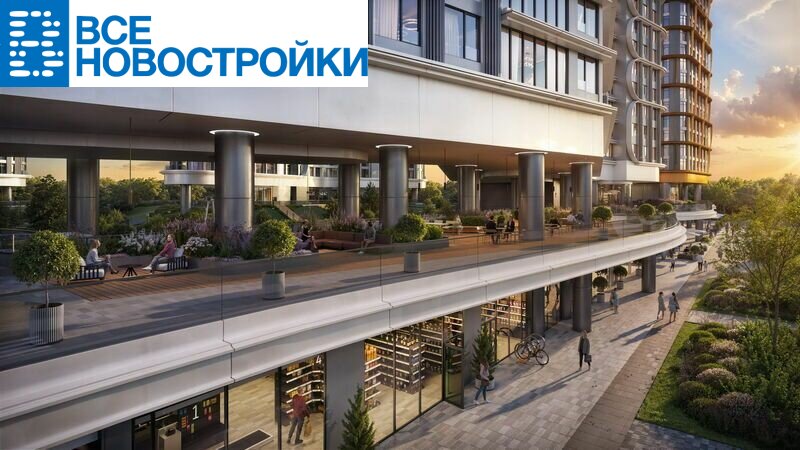 В лобби - потолки до 11 м, дизайнерские стойки ресепшен и комфортная мебель в мягких зонах ожидания. Для жителей предусмотрены детский клуб, фитнес-рум, коворкинг, переговорные, лаунжи. На крышах устроены видовые общественные пространства с барами, кинотеатром, зонами для занятий йогой.