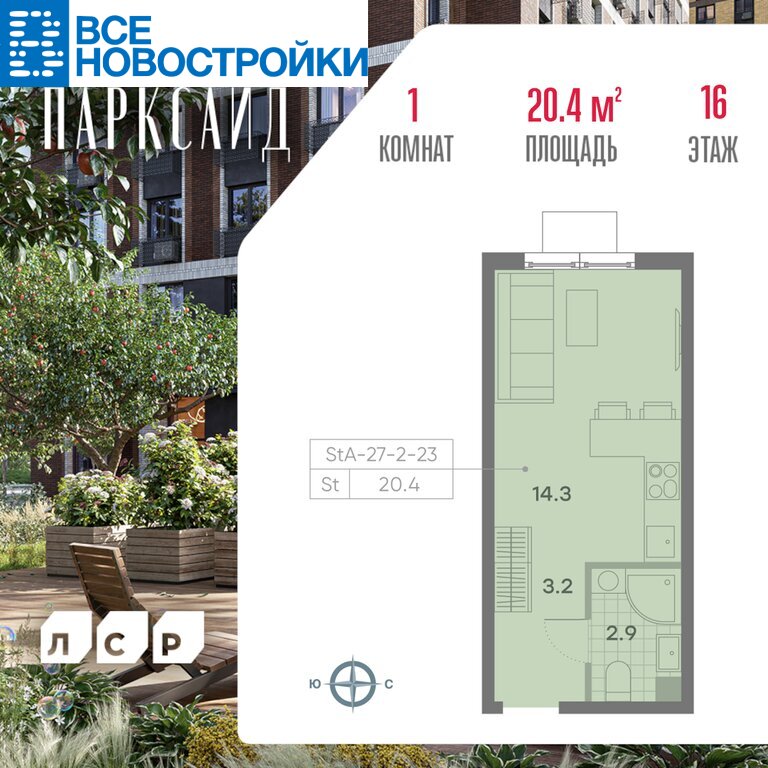 Продаётся квартира-студия общей площадью 20.4 кв. метров на 16 этаже жилого квартала “Парксайд“. Возводится в районе Чертаново Центральное Южного административного округа Москвы. В 2 км от будущего комплекса находится станция метро «Пражская». Для автомобилистов есть удобные выезды на Варшавское шоссе и Чертановскую улицу.