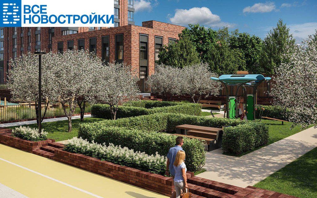 Концепция благоустройства создана дизайн-студией GAFA Architects.Во дворе предусмотрено несколько зон для релаксации, где можно обрести внутреннюю гармонию в контакте с природой. Под навесом расположены качели для всех возрастов, в одном из плавных расширений пешеходных дорожек разместились столик и кресла. Предусмотрено несколько зон для активного отдыха на свежем воздухе, воркаут, зоны отдыха, множество игровых для юных резидентов. Продуманный ландшафтный дизайн с разнообразными видами растений, территория двора будет выглядеть эстетично в любое время года.