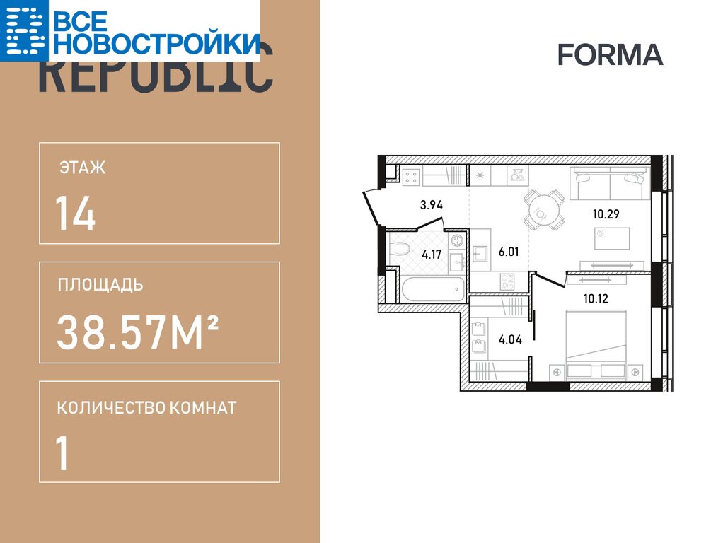 Прямая продажа от застройщика! Продается 1-к. квартира общей площадью 38.57 кв.м. на 14-м этаже 33 этажного дома, корпус Корпус 4.2. Без отделки. В жилом квартале премиум-класса Republic от девелопера FORMA. Всего в 7 минутах пешком от станции метро Белорусская.