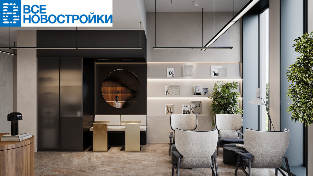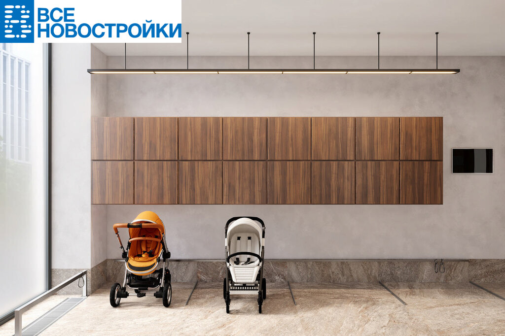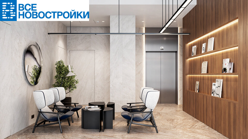 • Лобби по индивидуальному дизайн проекту от европейского бюро Вlank Architects: лаунж-зоны, ресепшен, колясочная, помещение для мытья лап животным после прогулки
