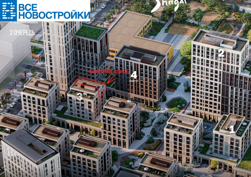 Где? - ЖК Шагал Кopпуc 3 (2 очередь). Сдача - 3 кв. 2025 года.
