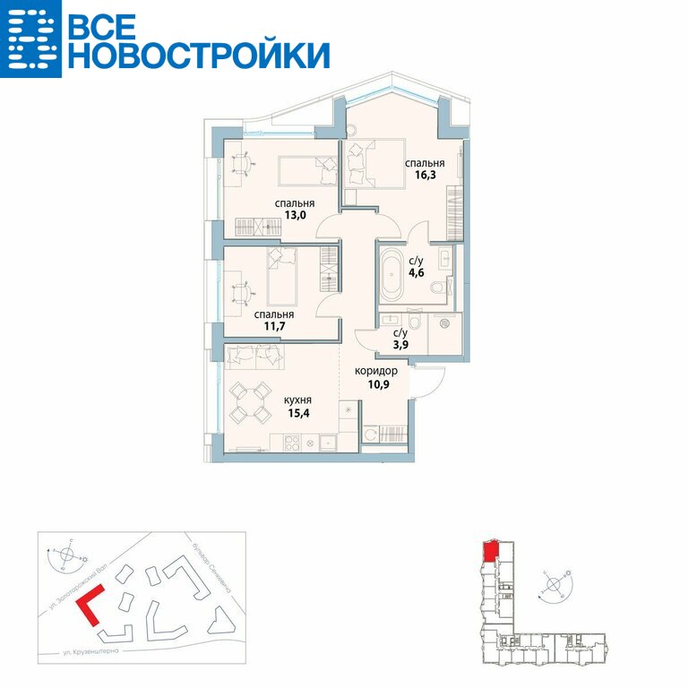 3-комнатная квартира: Москва, ЮВАО, район Лефортово, жилой комплекс Символ (75.8 м²)
