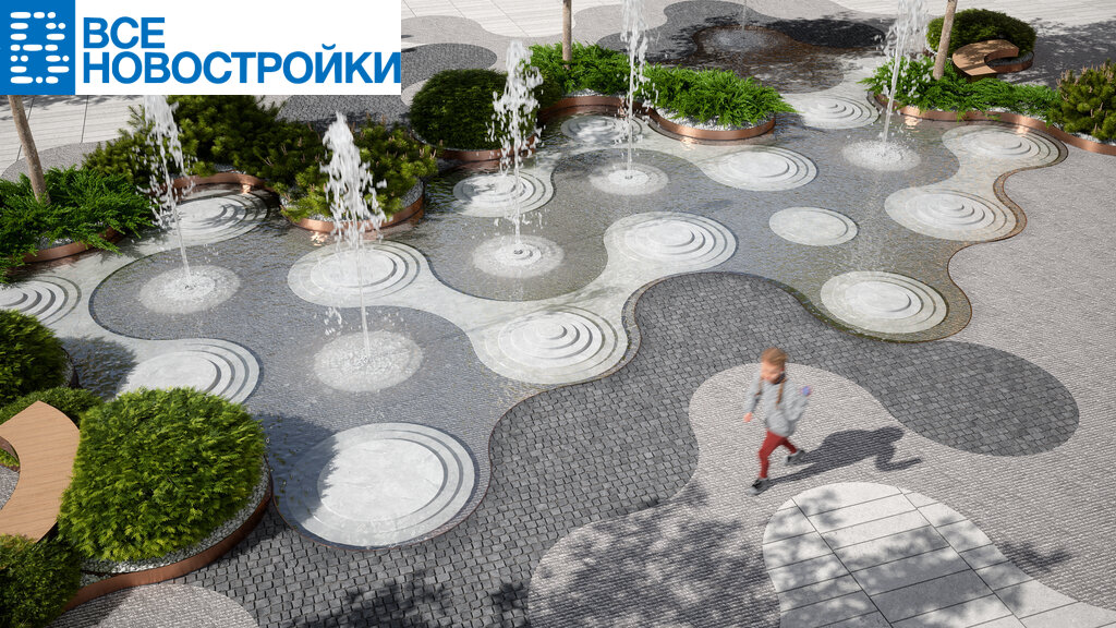 В благоустройство квартала входит закрытый и безопасный двор, фонтан, арт-объекты, световой дизайн, интерактивные площадки для детей разных возрастов.