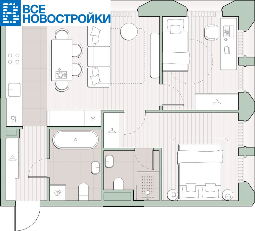 Продаётся 2-комнатная квартира общей площадью 57.4 кв.м. с отделкой white box. Квартира расположена на 9 этаже корпуса 5.3 в жилом комплексе бизнес-класса «Среда на Лобачевского» в пешей доступности от метро «Аминьевская».