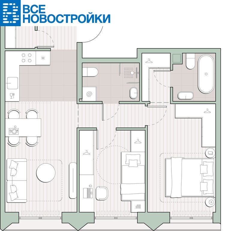Продаётся 2-комнатная квартира общей площадью 59.9 кв.м. с отделкой white box. Квартира расположена на 4 этаже корпуса блей, в в жилом комплексе бизнес-класса «Среда на Лобачевского» в пешей доступности от метро «Аминьевская».
