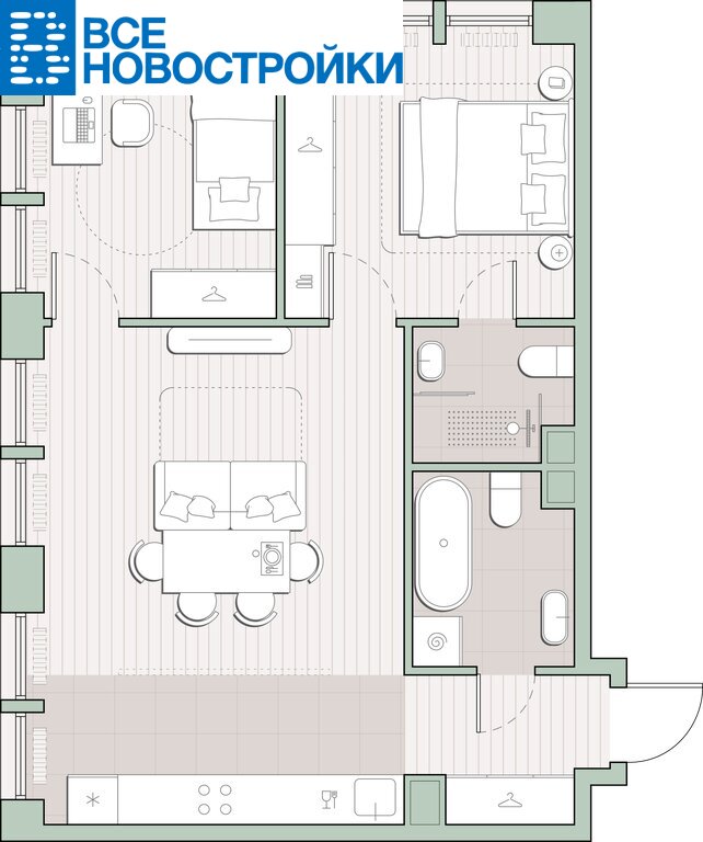 Продаётся 2-комнатная квартира общей площадью 58 кв.м. с отделкой white box. Квартира расположена на 5 этаже корпуса блей, в в жилом комплексе бизнес-класса «Среда на Лобачевского» в пешей доступности от метро «Аминьевская».